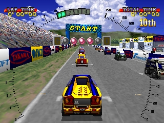 Да-да, это тот самый легендарный первый NFS. Поскольку славы франчайза на тот момент ещё не было, издатель решил сотрудничать с популярным автомобильным журналом Road & Track, поэтому вся игра представлена в виде тематического журнала: на каждое из авто в игре представлено своеобразное досье, причём эта фишка держалась в серии довольно долго. Несмотря на столь раннее появление, этот NFS уже несёт в себе тот соревновательный дух, к которому привыкли игроки. Газ, кстати, на квадрат, а смена из нейтралки - ручная. Да, на тот момент управление в гоночных играх на PS1 ещё не было стандартом и каждый старался преподнести своё видение. В общем, всё выполнено на уровне для 96 года, а если сравнивать с другими играми на PS1 тех лет, то нетрудно понять почему NFS1 обрёл такую бешеную популярность. Также советую ознакомиться с саундтреком из этой игры.